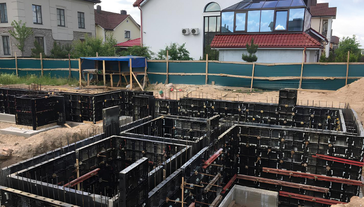 - Опалубка может быть деревянной, металлической или пластиковой. Чаще всего используем древесину для небольших проектов, и металл или пластик для крупных объектов. Опалубку устанавливаем строго по чертежам, чтобы обеспечить правильную форму и размер фундамента.